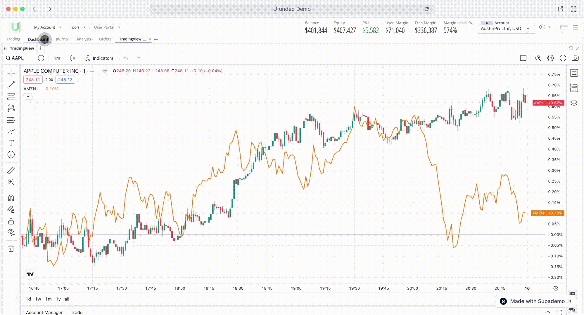 The Trading Dashboard displays a consolidation of trading statistics to provide insights into your trading performance. The dashboard can be configured to display specific date ranges, asset types, and you can filter by specific securities.